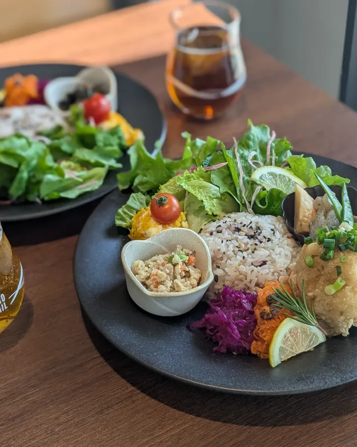 施設内では、ココトマカフェの人気ランチ「ヘルシープレート」が楽しめる他、イベントや会議に使えるレンタルスタジオ、落ち着いた雰囲気のラウンジ、自由に読書ができるスペースも完備。観光案内や地域情報も充実しており、ちょっとした休憩や街歩きの拠点にもぴったりです。