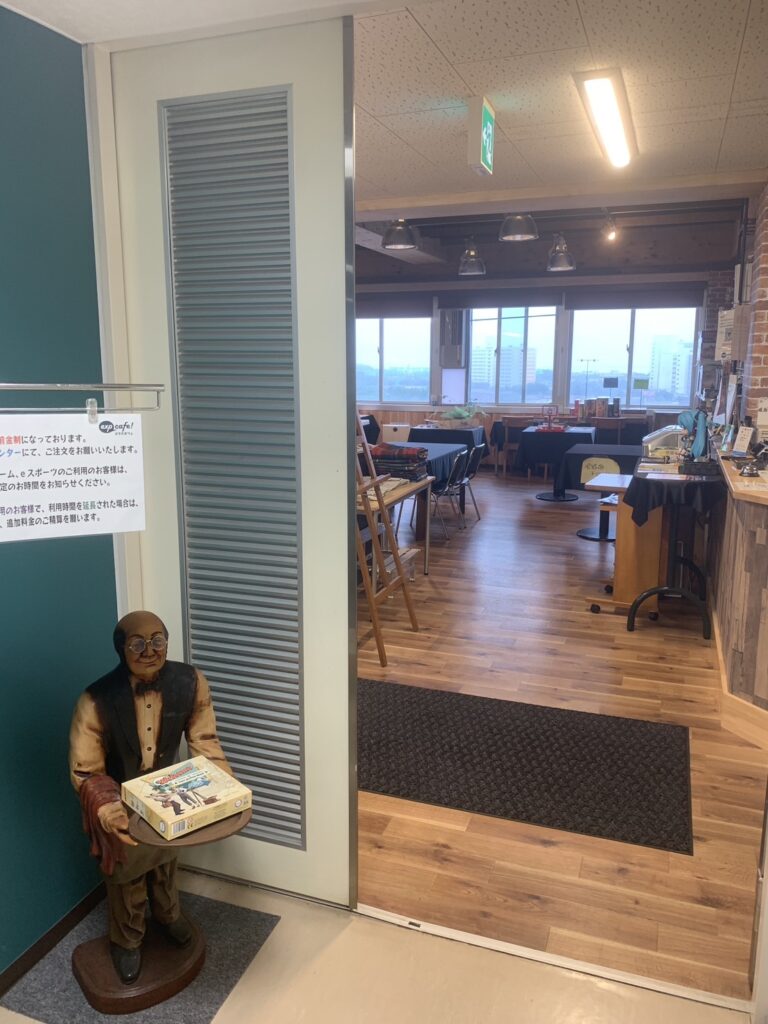 苫小牧の中心地に位置する大東末広ビル内にある「エクスカフェ」は、その広々とした店内と壁一面に並ぶボードゲームが特徴的です。